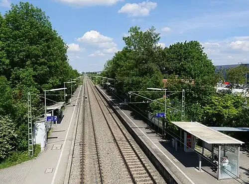 Grub (Oberbay) station (German: Haltepunkt Grub (Oberbay)) is a railway station in Grub in the municipality of Poing, located in the Ebersberg district in Bavaria, Germany.