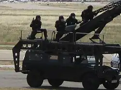 During the 27 years, it has been active, five members of the GEO have died.[4] The unit has had only one casualty in combat, which occurred during the assault on the Leganés flat where the suspected perpetrators of the Madrid train bombings of 11 March 2004 were hiding. Having realized that they were trapped, the terrorists detonated bombs in the flat killing themselves and GEO Subinspector Francisco Javier Torronteras Gadea.[8] This fatality was probably caused by the fact that the agents who entered the flat didn't know that the terrorists could have explosives.[9]