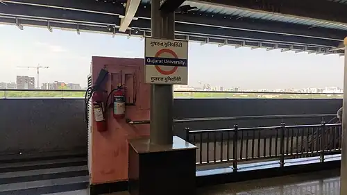 Gujarat University is an elevated metro station on the East-West Corridor of the Blue Line of Ahmedabad Metro in Ahmedabad, India,[1] which holds the main Gujarat University's Convention and Exhibition Center. It was opened to the public on 30 September 2022.