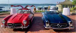 In July 2025, the Gull Wing Group held its annual convention in Victoria, British Columbia. The event featured six Mercedes-Benz AMG SLS models (produced 2010–2015), which continue the gull-wing door tradition of the original 300 SL.[20]