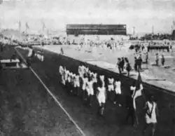 Officials present were athletics delegate V. Pasquet and secretary-general of the Haitian Olympic Committee, Henec Dorsinville.[4] Three other athletes: Louis Déjoie in the men's pole vault and decathlon,[5] and L. H. Clermont and C. Dupre in the men's team free rifle, were planned to join the rest of the athletes but did not start in their competitions.[6]