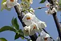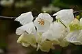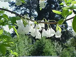 It is a vigorous, fast-growing deciduous shrub or tree growing to 8 m (26 ft) tall by 10 m (33 ft) broad, bearing masses of pendent, bell-shaped white flowers which appear in spring before the leaves. The flowers are followed by green, four-winged fruit. The leaves turn yellow in autumn.[3][4]