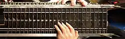 The labeling of the drawbar derives from the stop system in pipe organs, in which the physical length of the pipe corresponds to the pitch produced. Most Hammonds contain nine drawbars per manual. The drawbar marked "8′" generates the fundamental of the note being played, the drawbar marked "16′" is an octave below, and the drawbars marked "4′", "2′" and "1′" are one, two and three octaves above, respectively. The other drawbars generate various other harmonics and subharmonics of the note.[19] While each individual drawbar generates a relatively pure sound similar to a flute or electronic oscillator, more complex sounds can be created by mixing the drawbars in varying amounts.[20] Because of this, the Hammond organ can be considered a type of additive synthesis.[21]