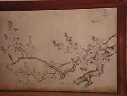 He contributed pieces to the Kyoto Imperial Palace during its reconstruction subsequent to a fire in 1854, one of the most famous being a cherry tree fusuma-e in the Sakura-no-ma (Cherry Blossom Room).[38] He died at 59 in 1872, and was buried at Tenshōji Temple.[39] Today, his works can be seen in the Kyoto Imperial Palace, the Kyoto National Museum and the British Museum.