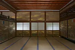 Artistic ability was defined as a combination of shitsuga (質画) and gakuga (学画): innate and learned painting skill.[6] Pupils entered workshops as children, based not primarily on talent, but on status.[7] Some studios strictly policed students' leisure activities, such as drinking and socializing, which was facilitated by the fact that pupils traditionally lived-in as uchi deshi.[8] Study was a serious, time-consuming endeavor: "the successful student spent years in training, a time during which he developed physical stamina, self-discipline, perseverance, the ability to earn for himself, facility in technical skills, and a good understanding of the aesthetics and spiritual considerations required of a dedicated painter".[9] Most studied for over ten years before being allowed to graduate, if they were allowed to graduate.[10] Apprenticeship began with menial tasks and "unobtrusive observation".[11] As pupils worked their way up to the rank of head students (deshi gashira),[12] their relationship to their mentors was comparable to that of retainer to lord.[9] Though seniors were usually referred to as sensei (teacher), some pupils addressed their instructors as tonosama, an honorific title for a feudal lord.[9]