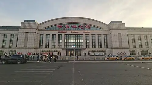 Harbin North railway station (Chinese: 哈尔滨北站; pinyin: Hāěrbīnběi Zhàn) is a railway station of Harbin–Qiqihar Intercity Railway and located in Harbin, Heilongjiang Province, China. The station was opened in 2015 with both conventional rail and high-speed rail services.[1]