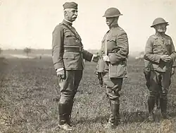 Bandholtz retired from active service for disability on November 4, 1923, and was promoted to the rank of major general.[5] He received many awards during his military career, including the Cross of Commander Order of the Crown, Cross of Commander French Legion of Honor, and Croix de Guerre with Palm. He was also honored with other foreign awards, such as the Grand Cross Montenegro Silver Medal for Valor and the Romanian Grand Cross, Order of the Cross. The latter is the only award of this class given to an American.[28]