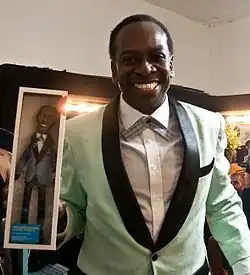 ![]() Harry Waters Jr. in 2015, wearing the Marvin Berry costume and holding a doll of the character | |