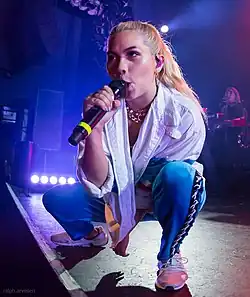 Since publicly coming out, Kiyoko has been an advocate for LGBT rights and is widely considered to be a gay icon by her fans,[107] who have nicknamed her 'Lesbian Jesus'. Her music videos highlight her own experiences and various LGBT-related issues. The music video for "One Bad Night" raised awareness of violence against transgender women.[100] For Pride Month 2017, Kiyoko partnered with MeUndies to promote their "Celebrate" campaign. Each pair of underwear sold had a portion of the profit donated to the Los Angeles LGBT Center.[108] In 2018, Kiyoko critiqued Rita Ora's song, "Girls", for its depiction of same-sex attraction and harmful implications for the LGBT community. Ora later apologized for the song's implications.[109][110][111] After 78 bras were thrown at Kiyoko during the Expectations Tour, she and Neara Russell donated them to I Support The Girls, an organization that supports homeless women, to support homeless LGBT youth.[112][113] In her acceptance speech for Push Artist of the Year at the 2018 MTV Video Music Awards, Kiyoko dedicated her win to queer women of color.[73] She marched in a Pride parade for the first time, attending the 2019 World Pride Parade in New York City as the float ambassador for W Hotels Worldwide.[114]