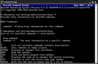 Z:\>help If you want a list of all supported commands type help /all . A short list of the most often used commands: <DIR > Directory View. <CD > Display/changes the current directory. <CLS > Clear screen. <COPY > Copy files. ...