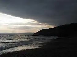 Hemmick Beach is a west-facing beach on the south coast of Cornwall, Britain. It is situated at the east end of Veryan Bay, on the west side of the Dodman Point headland, and to the south of the hamlet of Boswinger and to the west of Penare.[1]
