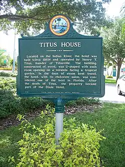 ![]() Historical marker about the Titus House in Titusville, Florida | |