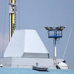 - The French FREMM frigate Alsace exiting Port-Louis harbour. The Herakles antenna is the rotating pyramid on top of the superstructure above the bridge