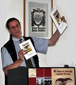 He is also the artistic director of the theatre- and research-project "War is daDa". For that research work he created the two projects entitled "Witness and Victim of the Apocalypse"[7] (Exhibition and book about Viktor Ullmann in World War I and the influence of the experiences of war to his music especially to the opera The Emperor of Atlantis or The Disobedience of Death ARBOS, Vienna-Salzburg-Klagenfurt-Arnoldstein-Prora 2007/2008).[8] A Czech translation of the book has been published at Prague and a Czech version of the exhibition has been presented at the City Archives of Prague in the Clam-Gallas Palace in 2015.[9] A Russian translation of the book has been published at St. Petersburg and a Russian version of the exhibition has been presented at the Russian Museum of the city of Kingisepp and at the House of Composers in St. Petersburg in 2016.[10] A Slovenian translation of the book has been published at Nova Gorica and a Slovenian version of the exhibition has been presented at the museum Grad Kromberk of the Goriški muzej in Nova Gorica in 2018 and 2019.[11]