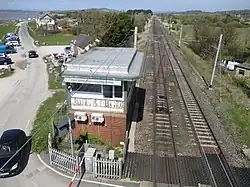 The nearby signal box still stands although now disused. Its latter role, purely as a manually controlled gate box to supervise the adjacent level crossing and that at nearby Bolton-le-Sands, was brought to an end in the Spring of 2013. NR had published proposals to close the box here initially at the end of 2012, which was briefly postponed until February 2013 before the work was finally carried out in May. Both crossings are now worked direct from Preston PSB using CCTV.[4]
