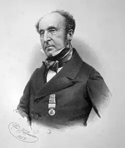 From around 1830 geologists were beginning to date rocks according to the embedded fossils.[2] The law of superposition whereby younger rocks lie above older ones was very well established and it was recognised that some layers may be missing because they had been eroded away. Folding and faulting of strata were recognised and in 1841 Arnold Escher von der Linth discovered that sometimes older rocks lay above younger ones. However his explanation involved such large horizontal movements of rock and folding on such a massive scale that he was afraid to publish his results because his theory would seem ridiculous. It was not until after his death that his pupil Albert Heim published the findings in 1878.[3][4][5] Thrust faulting, where there is a considerable horizontal movement of younger strata over older, had not yet been identified.[1]