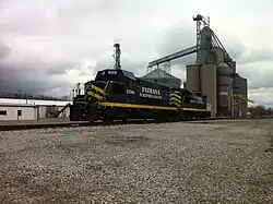The Indiana Northeastern Railroad (reporting mark IN) is a Class III short line freight railroad operating on nearly 130 miles (210 km) in southern lower Michigan, northeast Indiana and northwest Ohio. The Indiana Northeastern Railroad Company began operations in December 1992 and is an independent privately owned company. As of 2017 the railroad hauled more than 7,000 carloads per year. Commodities moved by the railroad include corn, soybeans, wheat and flour. It also handles plastics, fiberboard, aluminum, copper, coal, perlite, stone, lumber, glass, rendering products, as well as agricultural fertilizers and chemicals.[1][2][3]