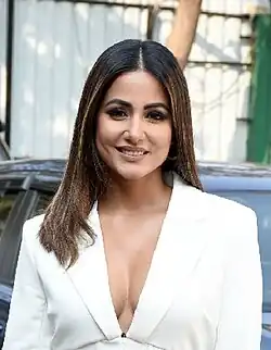 Hina Khan (pronounced [ˈɦiːnaː kʰaːn]; born 2 October 1987)[1] is an Indian actress who appears in Hindi and Punjabi films and television. Noted for her versatility across genres—from family dramas and reality shows to psychological thrillers. One of the highest-paid television actresses in India,[2][3] She is a recipient of several accolades including three ITA Awards, three Indian Telly Awards and seven Gold Awards.[4]