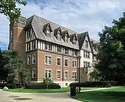Then, in 1866, James Wallace purchased the site of the Lyceum Village from the German Children's Home to create the German Wallace College Campus.[19] Another building in this village is Lindsay Crossman Chapel. Crossman Chapel was built under the name Emmanuel Methodist Episcopal Church; the church was not renamed and became part of the campus until the 1950s.[20] Across the street from Crossman Chapel is Kohler Hall. Kohler hall was built in the 1870s as the Methodist Children's Home.[21] Kohler wouldn't become part of BW until 1913. Kohler Hall today mostly houses Conservatory students (although it is open to all students). It has a reputation for being haunted, and has been featured in the book Haunted Ohio. Before becoming a residence hall, it was first a hospital for Civil War veterans, and later believed to function as a mental institution.[22] The Rev. William Nast, D.D., was for many years the Honorary President of the college. Early de facto presidents included the Rev. Jacob Rothweiler, the Rev. Frederick Schuler, and P.F. Schneider.[1]