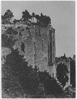 Located just below Château du Haut-Koenigsbourg is the ruin of Château de l'Oedenbourg,[3] which is also known as Petit-Koenigsbourg and is a historical monument in its own right.[4] Construction of Château de l'Oedenbourg is believed to have begun during the 13th century.