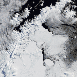 Radiocarbon dating has been used to date the start of glacial retreat on Alexander Island 18,000 years ago.[1] The outermost locations like Marguerite Bay were fully deglaciated 12,000 years ago and the further inland locations continued deglaciating for an additional 3,000 years.[1] The Larsen ice shelf was formed in the early Holocene at the latest estimation of 10,700 years ago.[2] Certain segments of the ice shelf have collapsed as recently as 1995 for Larsen A and a large segment of Larsen B collapsed in 2002.[2]