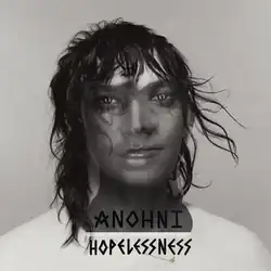 Hopelessness is the debut solo album by British-American artist Anohni, frontwoman of Anohni and the Johnsons, released on 6 May 2016 on Secretly Canadian, Rough Trade, and Hostess.[2] Featuring co-production by Hudson Mohawke and Oneohtrix Point Never,[2] the album departs from the chamber pop style of her previous work, instead exploring an electronic sound and engaging directly with political and environmental themes in the form of protest songs.[3][4]