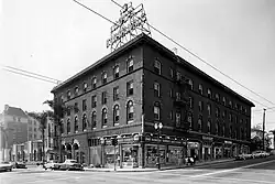 In March 1925, plans for the four-story store and hotel building were prepared for Karl Elliot by Architects Walker & Eisen. It was projected to cost $200,000 and would have stores on the first floor, with a hundred rooms on the upper floors. In 1931, it was selected as the official hotel for Stanford University alumni, as well as the University of Southern California and the University of California Los Angeles.