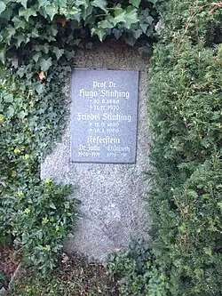 Hugo Stintzing died at the age of 82 on 11 December 1970 and was buried in the Old Cemetery in Darmstadt, Germany.[1]