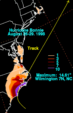- ^ a b c National Climatic Data Center (1998). "Bonnie Buffets North Carolina!". NOAA. Archived from the original on September 16, 2008. Retrieved September 22, 2008.