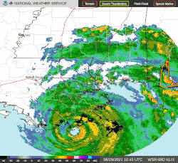 Hurricane Ida at peak intensity nearing landfall in Louisiana on August 29