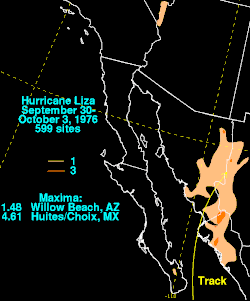 - ^ a b c d Roth, David M. "Hurricane Liza – September 30–October 3, 1976" (GIF). Hydrometeorological Prediction Center. Retrieved March 1, 2013.