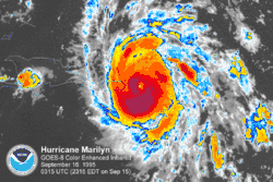 ![]() Marilyn near peak intensity just north of Puerto Rico on September 16 | |