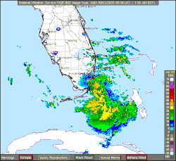Due to the asymmetrical structure of Sally, almost all of Florida saw continuous shower and thunderstorm activity starting on September 12. A low-topped supercell in the outer rainbands of Sally prompted a tornado warning east of Tampa near Sebring on September 12.[73] The next day, another storm prompted two tornado warnings in southwestern Lee County.[74] Several special marine warnings were also issued for the Florida coast due to possible waterspouts.[75][76] An EF0 tornado south of Marianna damaged a shed and uprooted several trees on September 16.[77][78] Sally caused heavy rainfall and moderate flooding in South Florida and the Florida Keys, with nearly 8.5 inches (220 mm) falling over Marathon, over 10 inches (250 mm) in Key West and peaking at 12 inches (300 mm) in Lower Matecumbe Key.[79][80] Tropical storm-force gusts were reported in portions of the Miami metropolitan area.[81]