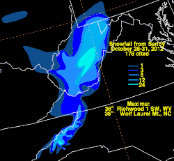 - ^ "Power outages continue after Sandy dumps snow on eastern Kentucky". WKYT TV. Archived from the original on May 6, 2013. Retrieved November 1, 2012.