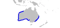 The coffin ray has a wide but disjunct distribution in tropical and warm-temperate Australian waters. The western part of its range extends from Gulf St Vincent in South Australia to Broome in Western Australia, and the eastern part from Eden in New South Wales to Heron Island in Queensland. It does not occur off Victoria or Tasmania. This common, bottom-dwelling species is typically found close to shore, no deeper than 80 m (260 ft), though it has been recorded from as deep as 240 m (790 ft).[1][5] In 1910, the trawler Endeavour caught several coffin rays at depths ranging from 47 to 120 fathoms (86–219 metres).[8] The coffin ray favors habitats with sandy or muddy bottoms, including beaches, estuaries, and bays, and can also be found over seagrass as well as on and around rocky and coral reefs.[9][10]
