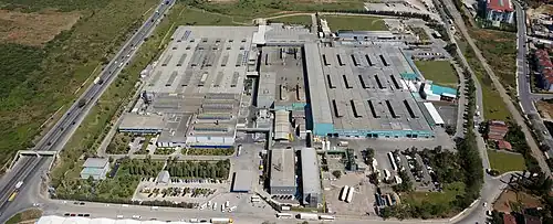 The factory covers 108,000 m2 of the 233,000 m2 total area and has an annual production capacity of 210,000 units (increased in 2013 from an initial of 125,000 units, with a US$609 million investment),[2] the company being the fifth-largest automaker in Turkey. The total first stage investment was US$180 million. The first two models produced were the Hyundai Accent and the Grace, the Starex being added to the line-up in 2002, the Matrix in 2007, and the i20 in 2010.[7] On 15 July 2014, the company produced its one millionth vehicle.[8]