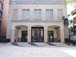 The museum building was initially built in 1933 as the Hsinchu Municipal Theater or Yule Theater.[2][1] It was the first luxury theater at that time with air conditioner in Taiwan with a capacity of 500 audiences.[3] In 1944, the second floor of the building was heavily damaged by aerial bombing during the Second Sino-Japanese War by the Allied Forces.[4]