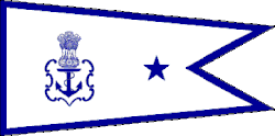 | | Commissioning pennant of the Indian Navy | A white triangular pennant with a gold-bordered octagon enclosing the crest of the Indian Navy in the hoist. |