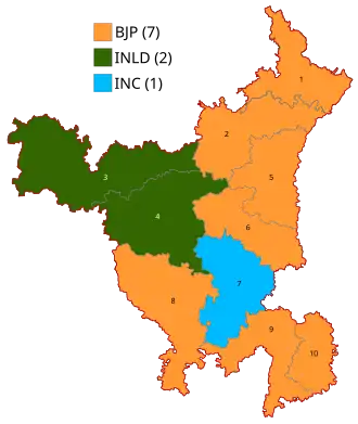 ![]() Seatwise Result Map of the 2014 general election in Haryana | |||||||||||||||||||||||||||||||||||||||||||||||||||||