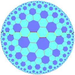 Hyperbolic infinite regular skew polygons also exist as Petrie polygons zig-zagging edge paths on all regular tilings of the hyperbolic plane. And again like in the Euclidean plane, hyperbolic infinite quasiregular skew polygons can be constructed as truncated Petrie polygons within the edges of all truncated regular tilings of the hyperbolic plane.