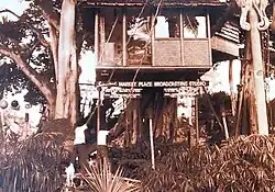 A large banyan tree saw Beach's installation of an office tree house where he could be seen surveying the activity in the Market Place below. Other buildings included the Dagger Bar, and several representations of small villages meant to symbolize Korea, China, Japan, and the South Seas. During the 1960s, the Market Place also included the Hawaiian Hālau, Japanese Tea House and Esplanade buildings. Generations of notable musicians performed at the Market Place’s nightclubs. This included Martin Denny, the bandleader behind the fusion of new wave jazz and jungle noises called exotica. Singer Don Ho later had a regular gig at the International Market Place before he hit it big at places like Duke Kahanamoku's Nightclub.[5][6][7] At its height the International Market Place encompassed 50 shops, night clubs, and restaurants, three of which were owned by Beach himself, including The Colonel's Plantation and Beef Steak and Coffee House.[8]