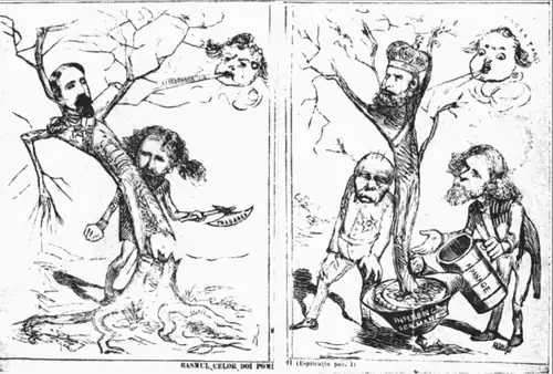 Ion Luca Caragiale was interested in the politics of the Romanian Kingdom, and oscillated between the liberal current and conservatism. Most of his satirical works target the liberal republicans and the National Liberals, evidencing both his respect for their rivals at Junimea and his connections with the literary critic Titu Maiorescu. He came to clash with National Liberal leaders such as Dimitrie Sturdza and Bogdan Petriceicu Hasdeu, and was a lifelong adversary of the Symbolist poet Alexandru Macedonski. As a result of these conflicts, the most influential of Caragiale's critics barred his access to the cultural establishment for several decades. During the 1890s, Caragiale rallied with the radical movement of George Panu, before associating with the Conservative Party. After having decided to settle in Berlin, he came to voice strong criticism for Romanian politicians of all colours in the wake of the 1907 Romanian Peasants' Revolt, and ultimately joined the Conservative-Democratic Party of Tache Ionescu.