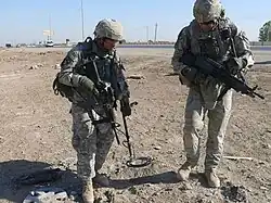 U.S. Army soldiers from the 1st Cavalry Division mine-sweeping near a Baghdad highway in October 2009.