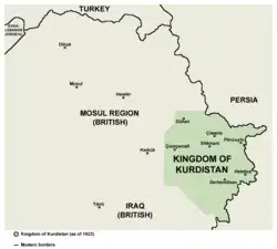 - ^ Eskander, Saad (2000). "Britain's Policy in Southern Kurdistan: The Formation and Termination of the First Kurdish Government, 1918-1919". British Journal of Middle Eastern Studies. 27 (2): 139–163 [pp. 151, 152, 155, 160]. doi:10.1080/13530190020000501. S2CID 144862193.