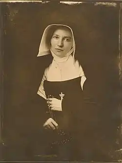 She joined Sisters of Providence (Ruillé-sur-Loir, France), in 1839, where she was given a religious name as Sister Francis Xavier.[4] On 17 November 1841 she arrived to Sisters of Providence of Saint Mary-of-the-Woods, Indiana, where she served for fourteen years until her death.[5] At Sisters of Providence, she also held important leadership positions including novice mistress. She assisted Saint Theodora Guerin, the founder of Sisters of Providence of Saint Mary-of-the-Woods, in discharging her administrative responsibilities.[4]