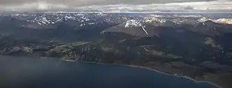The southwest part of the island, between the Almirantazgo Fjord and the Beagle Channel and extending west to end at Brecknock Peninsula on the Pacific Ocean, is mountainous with a heavily indented coastline, dominated by the Cordillera Darwin. Most of this part of the island is included in the Alberto de Agostini National Park of Chile.