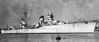 Eugenio di Savoia was a Condottieri-class light cruiser, which served in the Regia Marina during World War II. She survived the war but was given as a war reparation to the Hellenic Navy in 1950. Eugenio di Savoia was renamed Elli and served until 1965.