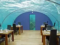 Ithaa, which means mother-of-pearl in Dhivehi, is an undersea restaurant located 5 metres (16 ft) below sea level at the Conrad Maldives Rangali Island in Alif Dhaal Atoll in the Republic of Maldives.[1]