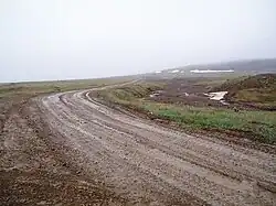 The central part of the district is part of the Chukotka Mountains. The northwest is drained by the Amguema River. This valley is a key resource for the part of the population that does not live by the sea and contains the only significant stretch of road in the district, running from Egvekinot, through the indigenous locality of Amguema, to the now defunct mining settlement of Iultin.[13] Other populated places in the district are only reachable either by sea or by helicopter. The main lakes in the district are Ekityki, Ervynaygytgyn and Yanranaygytgyn.[14]
