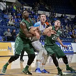 Jacksonville University's most notable rivalry is with crosstown opponents and fellow ASUN members, the University of North Florida Ospreys.[18] The two universities contest the "River City Rumble", in which the school with the most wins over the other across all sports receives a trophy, the SunTrust Old Wooden Barrel.[19] JU holds the edge in the men's basketball series 15–11 in favor of JU after the 2014–15 regular season. However, UNF leads the series 10–7 since UNF became a full Division I member.[20]